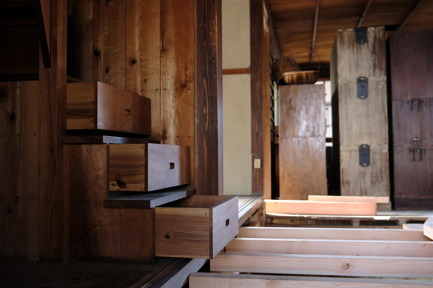 I spent about half an hour crawling over this half-naked structure, still full of wooden boxes that old owner had left behind, but without portions of it's floor, and with it's most intricate screens still in place and the house shrine empty (sorry, not sure if it is considered a Buddhist butsudan or Shinto kamidana).