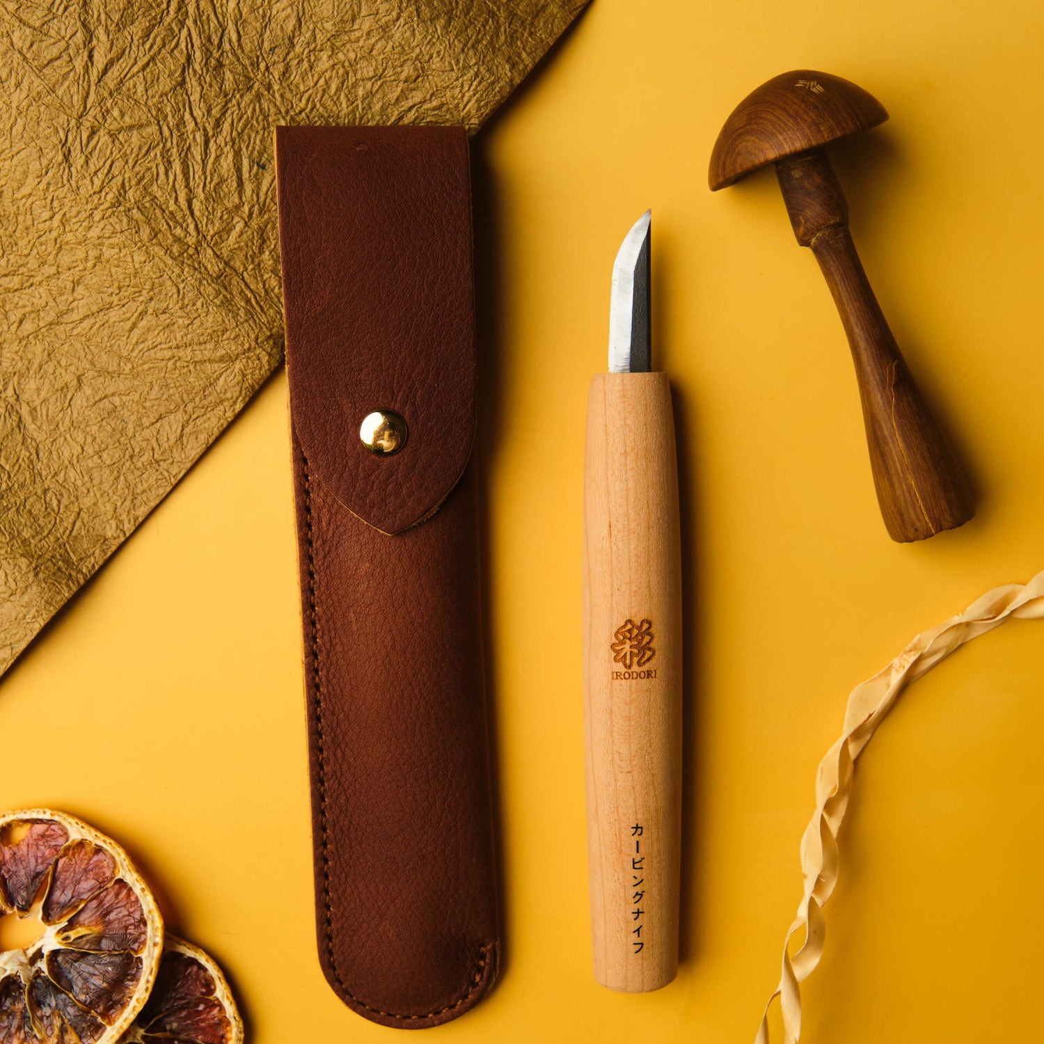 For western carvers, this knife will feel approachable and familiar. If a sloyd knife embarked on an extended pilgrimage through Japan, reflecting, fasting and philosophising as it went, we think it would return to Scandinavia looking something like this - a little slimmer in the handle, with a light and functional leather case, and a blade that has been shortened, refined and sharpened to within an inch of it's life with a HSS cutting edge.